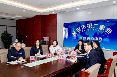 当天,外科大楼远程会诊中心内,院党委书记崔红卫,副院长刘志敏、高立学参会,与北大口腔医院院长郭传瑸,副院长蔡志刚,院长助理孙燕楠,通过视频进行即时互动交流。