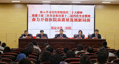 大会要求,全院广大干部职工要更加紧密地团结在以习近平同志为核心的党中央周围,忠诚捍卫“两个确立”、坚决做到“两个维护”,深入学习宣传贯彻党的二十大精神,发扬伟大的建党精神,锚定医院高质量发展奋斗目标,坚定信心、同心同德,勇毅前行,撸起袖子加油干,奋力开创医院高质量发展新局面,为保定建设品质生活之城贡献力量。